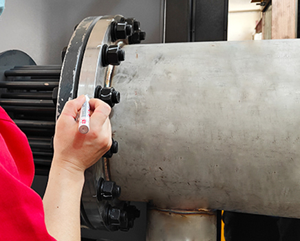 所有法蘭、閥門螺絲擰緊狀態(tài)采用全檢,檢測后使用打點筆打點再次確認,確保無漏檢、漏裝的異常現象發(fā)生。